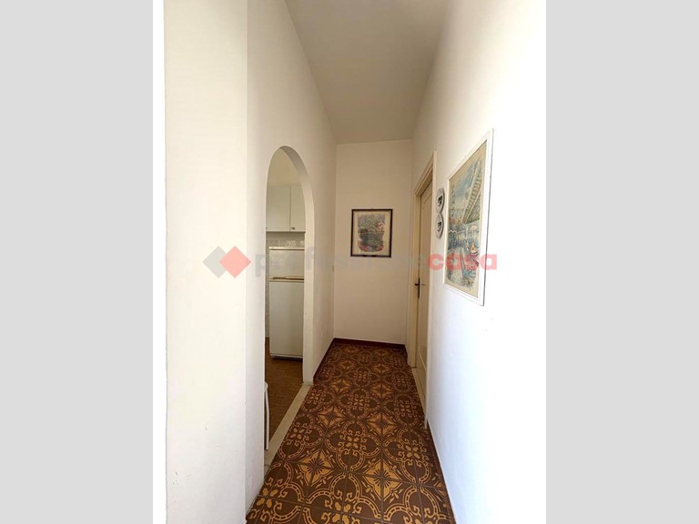 L'ingresso ci conduce a destra nel bagno con vasca e finestra, frontalmente al soggiorno con camino dotato di balcone, a sinistra tramite un piccolo disimpegno nella cucina abitabile e nella camera da letto matrimoniale.