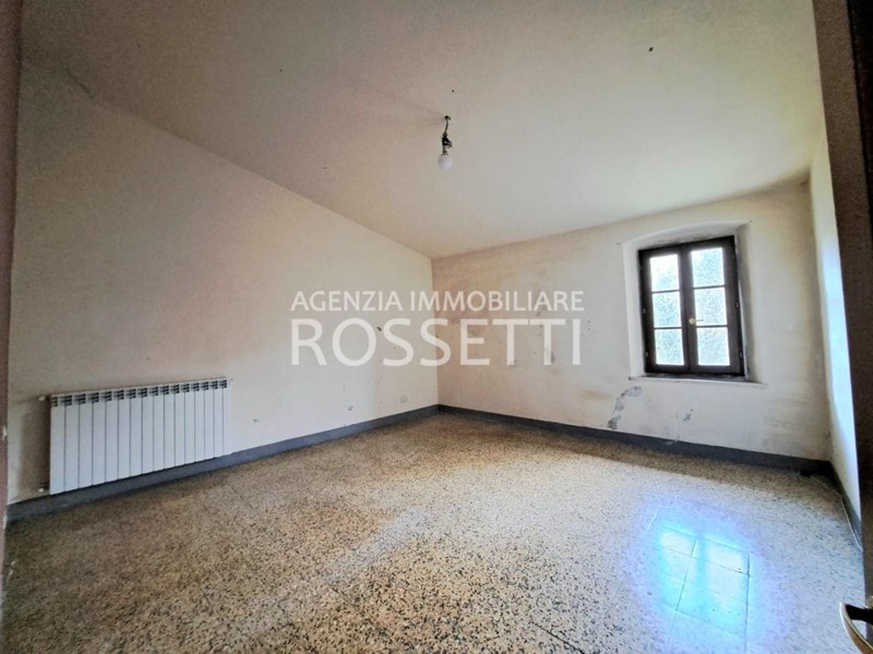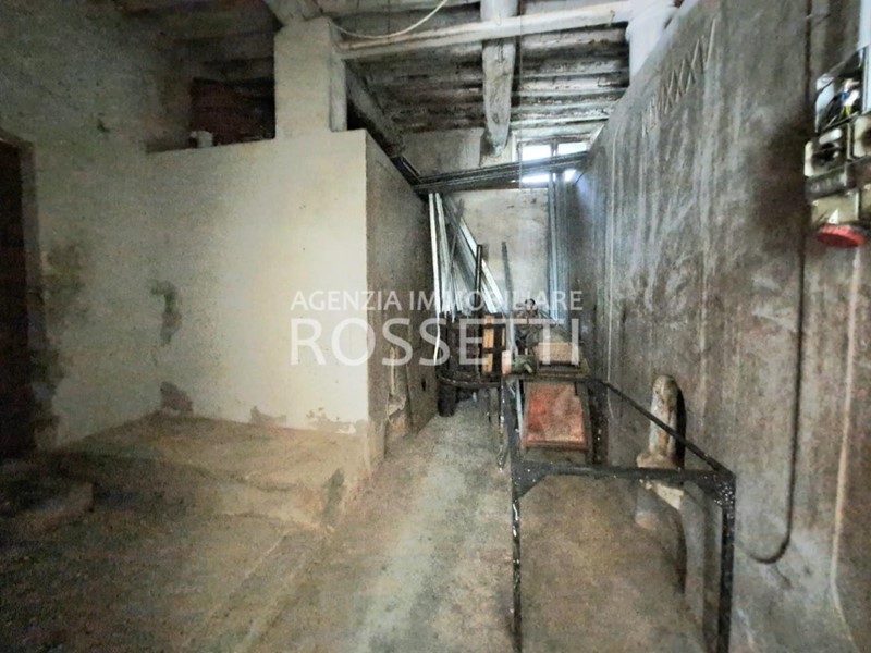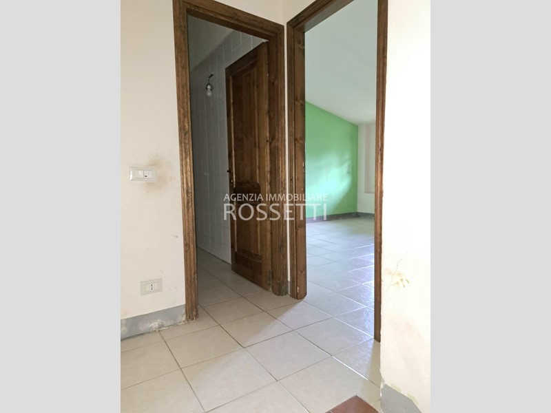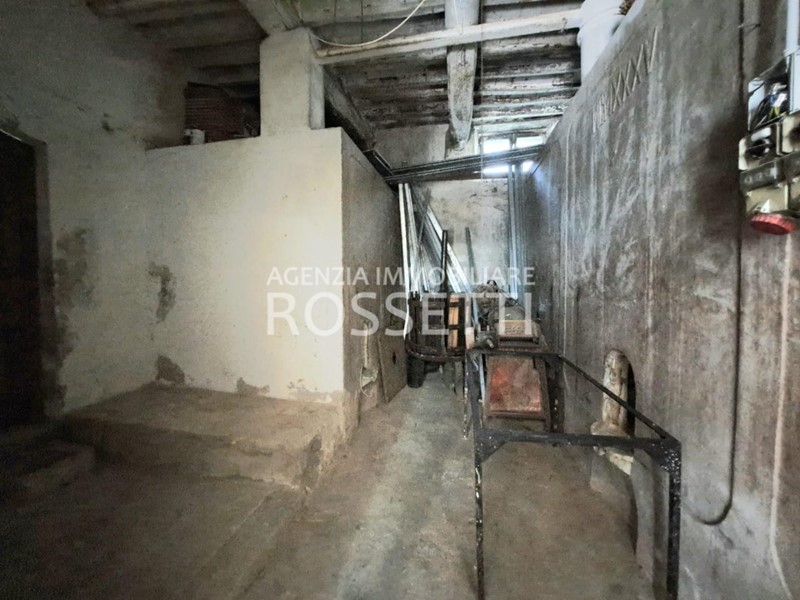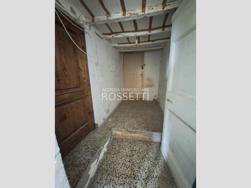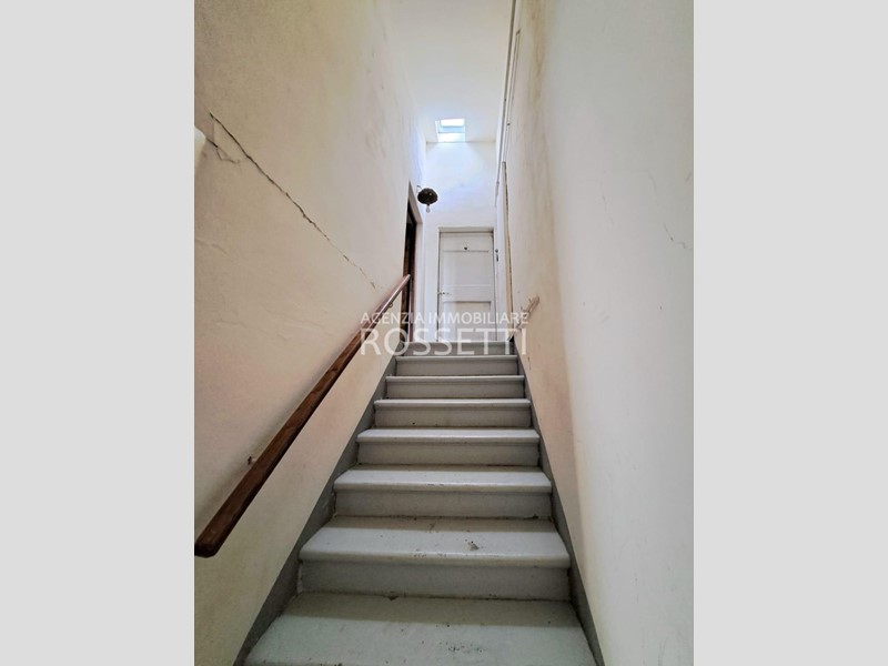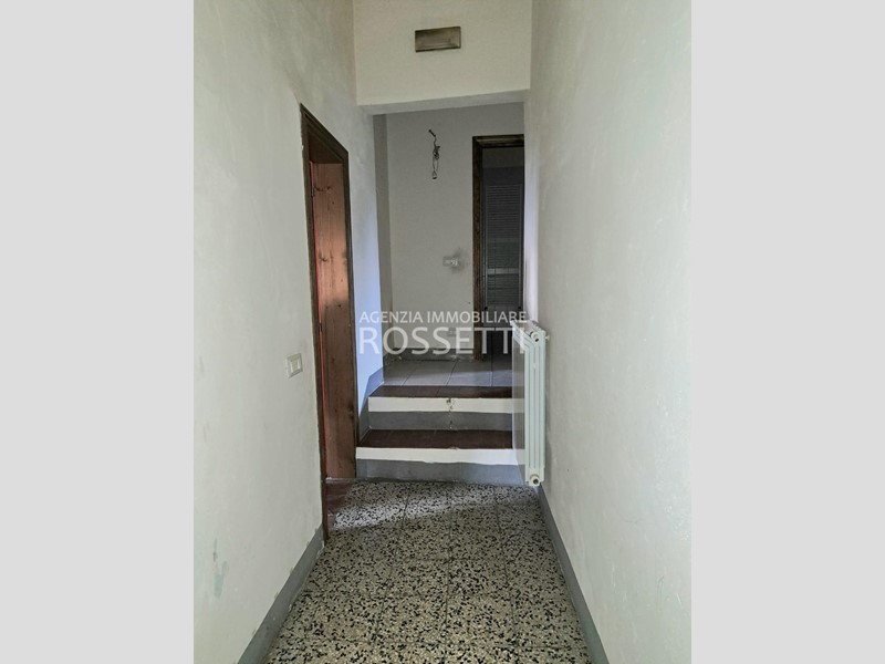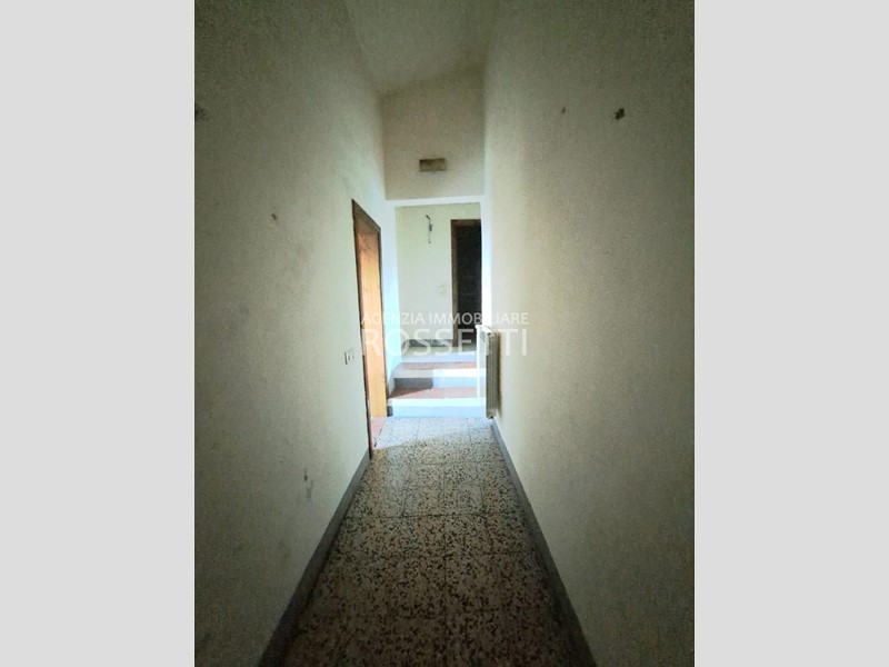 Al piano terreno ampio ingresso e scala per il piano primo a comune con altra unità e 4 locali ad uso deposito-cantina con tettoia; al piano primo appartamento di 4 vani con bagno ed ampio vano deposito.