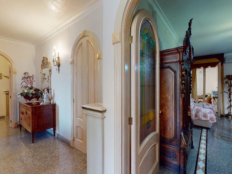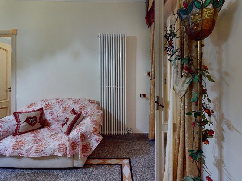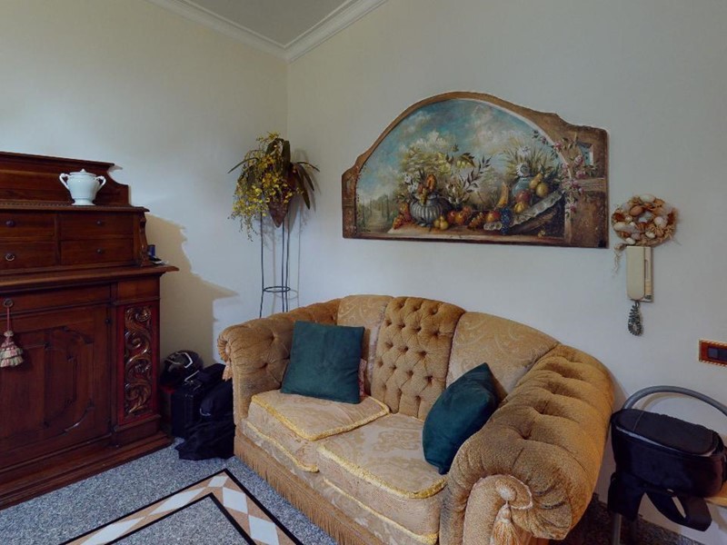 Ingresso accogliente che conduce a un ampio doppio salone con camino;