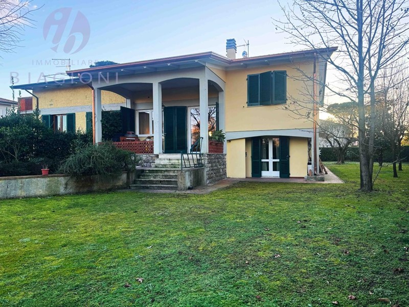 IN Esclusiva di vendita Marina di Pietrasanta a circa 1000 metri dal mare, in zona residenziale vendesi porzione di bifamiliare completamente ristrutturata , sviluppata su due livelli + mezzanino e così composta. Al piano terra rialzato , porticato d'ingresso , cucinotto con zona pranzo , ampio soggiorno con camino. Al piano primo 3 camere di cui 1 matrimoniale e 2 doppie e bagno a servizio, sia della zona notte che della zona giorno . Al piano con altezza inferiore a 2,70 H. ampio vano da adibire e altro servizio igenico. Grande giardino su tre lati con vari posti auto interni .