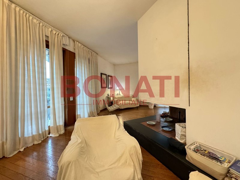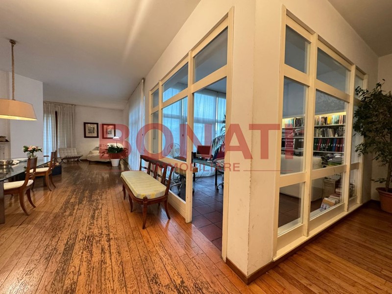 Migliarina - nella zona più rara e prestigiosa del quartiere, in contesto molto signorile, si propone appartamento di mq. 150 in villa bifamiliare che copre tutto il primo piano della villa così meglio descritto: ingresso n ampio soggiorno con zona pranzo e zona divani con grande camino e balconata angolare, grande cucina abitabile, studio finestrato, disimpegno della zona notte con camera matrimoniale padronale con armadi a muro e grande bagno en suite in marmo bianco di Carrara dotato di doppio lavandino, vasca e doccia, seconda camera matrimoniale e secondo bagno; camere con uscita su balconata angolare. Le condizioni interne sono buone e l'immobile necessita di lavori di ordinaria manutenzione. Di proprietà un grande box auto di mq. 55 ed un giardino di mq. 150 oltre al giardino che circonda la villa in comproprietà.
