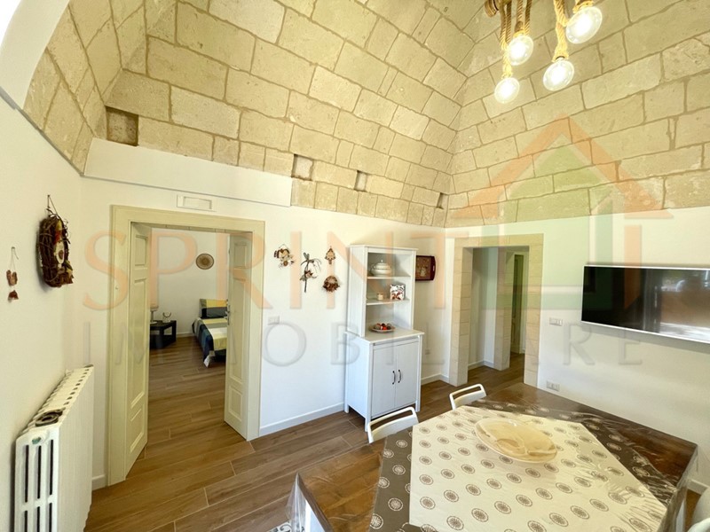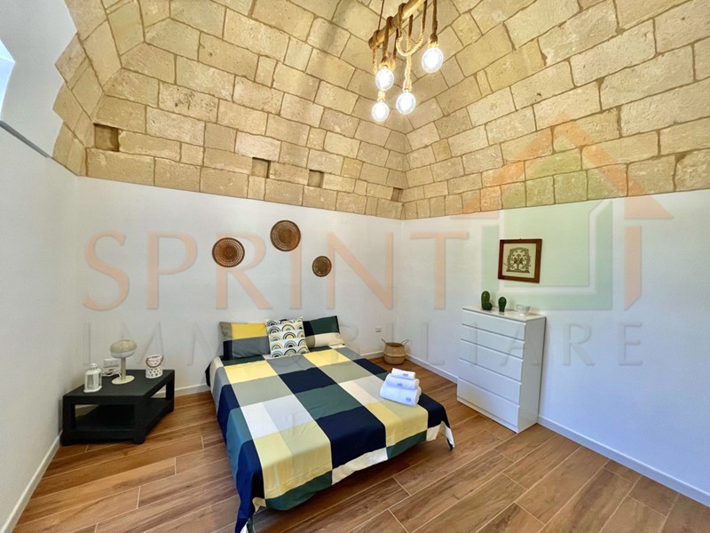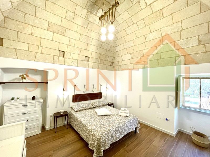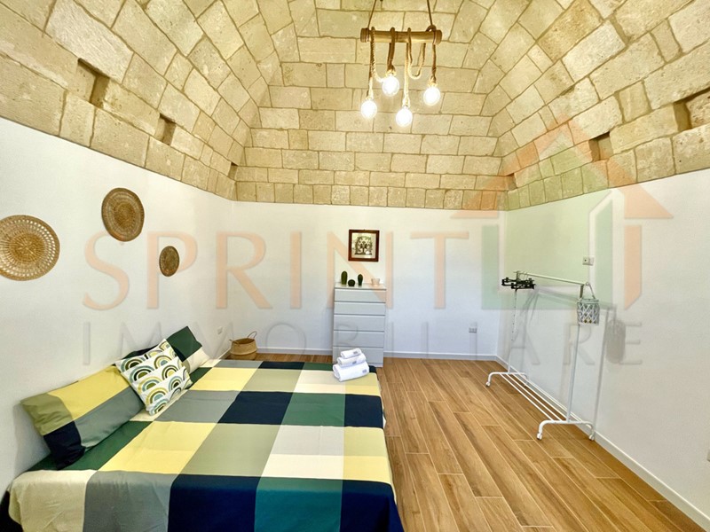 Monopoli-Campagna, in C.da Impalata, a pochi passi da tutti i servizi che offre la contrada, vendesi libera abitazione d'epoca, ristrutturata di recente, con giardino e piazzale di pertinenza. Al suo interno l'immobile è composto da Ingresso-cucina-sala da pranzo, disimpegno, bagno, 2 comodi vani letto, ripostiglio, soppalco. Completa l'immobile ampio forno a legna.