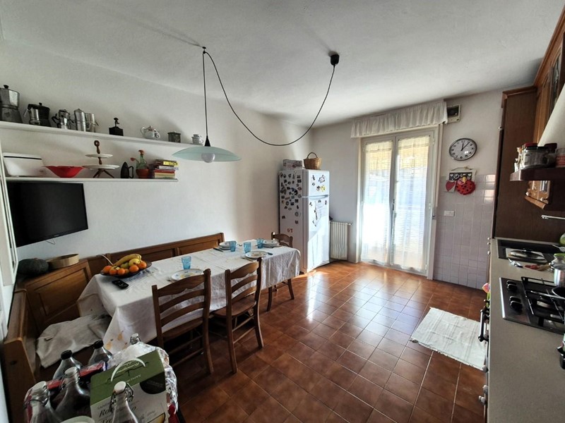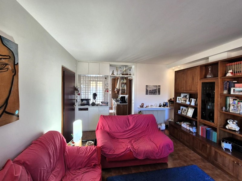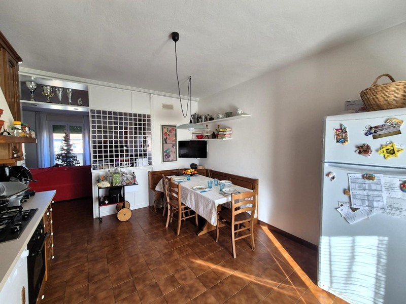 L'immobile è composto da: grande cucina abitabile da cui possiamo accedere alla terrazza in parte coperta, grande soggiorno anch'esso con terrazza, due camere matrimoniali, un bagno finestrato con doccia completamente ristrutturato di recente e stanza studio da poter usare come jolly.