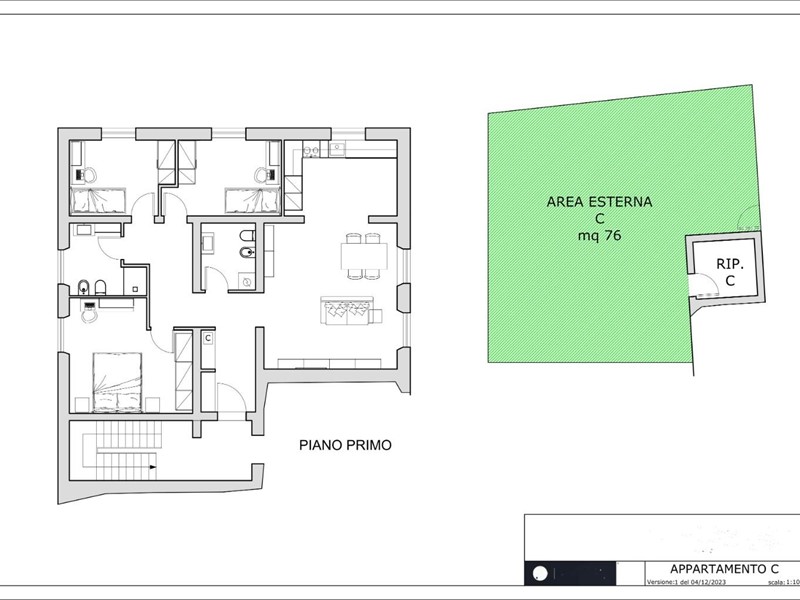 L'appartamento ha ingresso tradizionale ed è composto da ingresso , soggiorno/pranzo, cucina semi abitabile, , camera matrimoniale , due camere singole e due bagni. L'appartamento è corredato da resede esclusiva al piano terra di m² 76 , ripostiglio in muratura e due posti macchina nell'area comune. Bellissimi affacci.