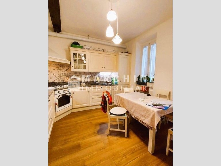 Posto al piano secondo di un edificio storico del '500, si compone di ingresso tradizionale, salone con servizio, cucina abitabile e sala da pranzo, due camere singole, disimpegno notte, camera matrimoniale con bellissimi affreschi, e infine il bagno.