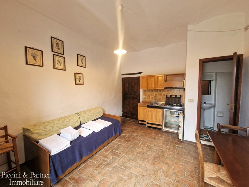 L'appartamento è composto da soggiorno con angolo cottura e terrazza con bella vista sulla campagna e le colline circostanti, camera matrimoniale e bagno con doccia.