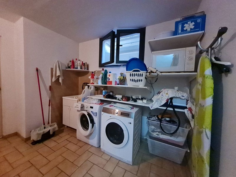 Dal piano di ingresso è possibile accedere anche al livello -1 che ospita un ulteriore ambiente, con cantina, zona lavanderia e collegamento diretto al box doppio in lunghezza.