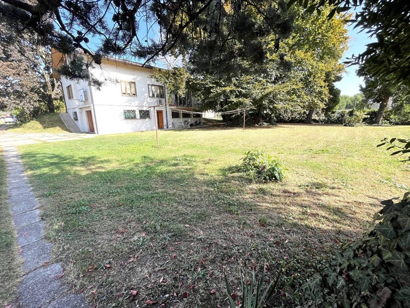 Immersa in ampio parco piantumato, soleggiata villa singola disposta su unico piano, così composta: ingresso con porticato, cucina abitabile, soggiorno con accesso all'ampio terrazzo, disimpegno notte, tre camere, un bagno, soffitta al piano primo e corridoio, tre comode stanze, centrale termica e garage al piano seminterrato. La proprietà è situata in una delle zone più richieste di San Daniele del Friuli, prossima a tutti i servizi ma prettamente residenziale.