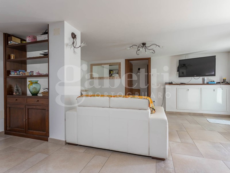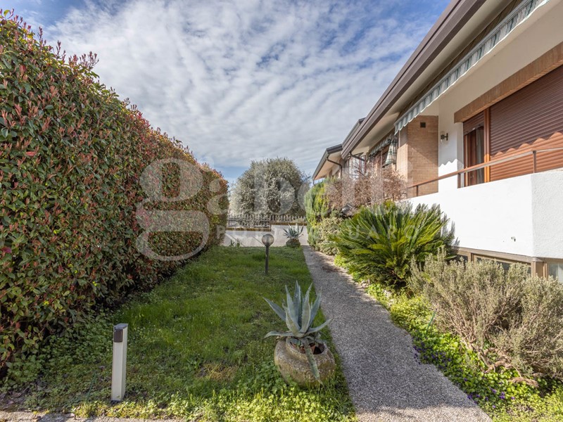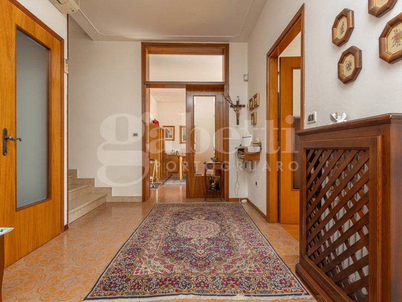 Il grazioso vialetto antistante l'abitazione conduce al piano nobile che si estende su due livelli sfalsati caratteristici delle abitazioni degli anni settanta e ottanta.