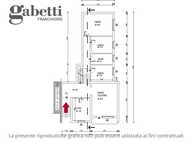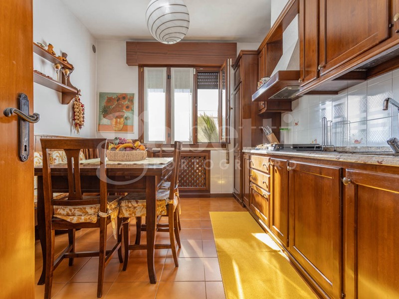 Dal comodo ingresso accediamo alla cucina abitabile indipendente e all'ampio soggiorno con il suo terrazzino, mentre pochi gradini conducono al corridoio che sapientemente suddivide le tre camere, di cui una matrimoniale e un bagno con vasca.