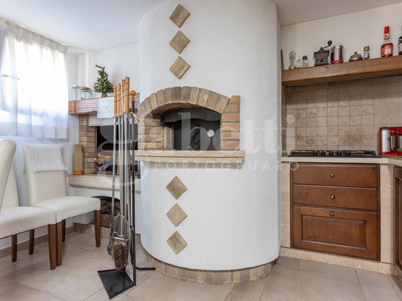 Il pianterreno, di recente ristrutturazione, con accesso indipendente e collegato internamente tramite scale, si estende per un totale di 90mq ed offre una magnifica taverna arredata su misura con materiali di pregio, camino e forno a legna per la pizza. Sempre al piano, troviamo un bagno con box doccia, una cantina e la centrale termica.