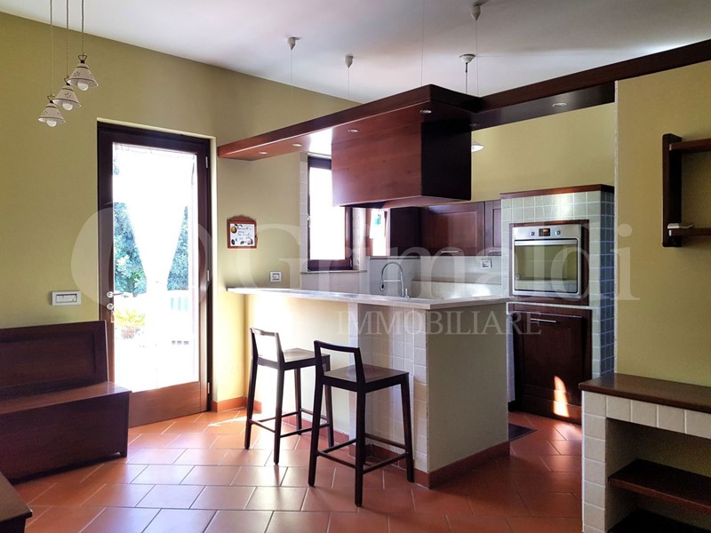 Il piano rialzato della villa si sviluppa su una superficie interna di circa 215 mq, gli ambienti sono armoniosamente disposti, ricchi di diverse finestre e porte finestre che rendono ogni vano luminoso; si compone di: ingresso in ampio soggiorno con termo camino, sala da pranzo con cucina in muratura e vano lavanderia, tre camere da letto, di cui due con ingresso indipendente e asservite da bagno, vano cabina armadio e bagni rifiniti con mosaico in travertino. Due terrazzi a livello antistanti e un terrazzo accessoriato a servizio della zona cucina, circondano l'abitazione.