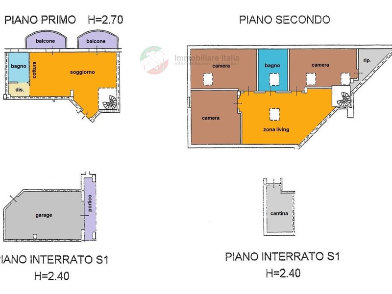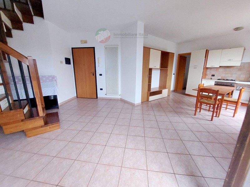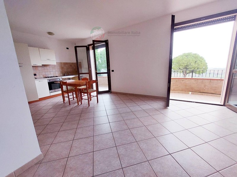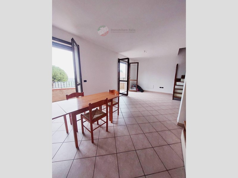 Primo piano, ingresso in comodo soggiorno open-space con angolo cottura e 2 balconi con vista verso la costa e sempre sullo stesso livello troviamo il bagno;