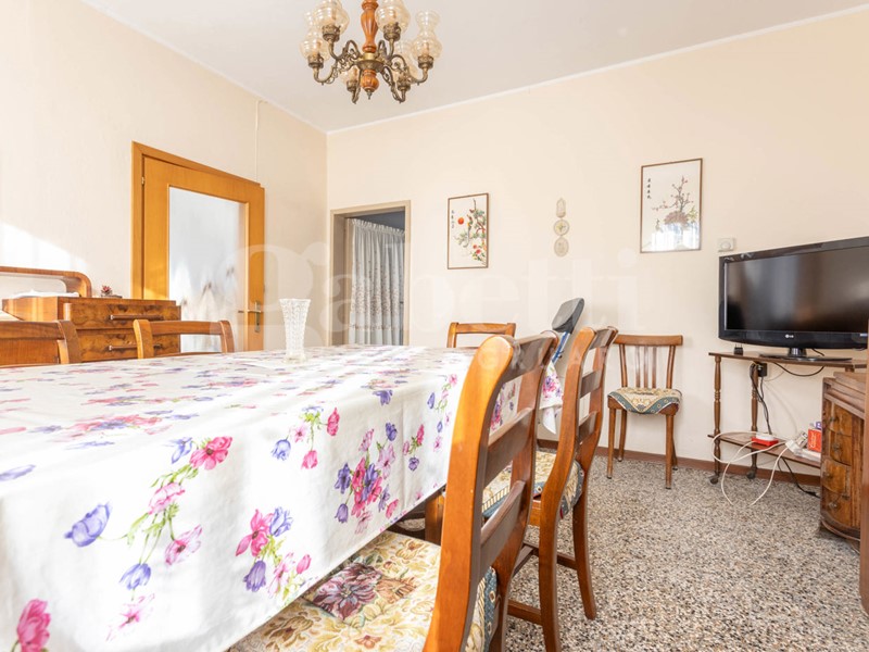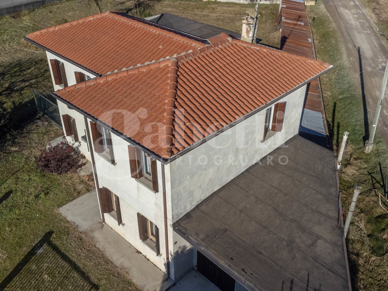 L'abitazione edificata sul finire degli anni '50 necessita di interventi di ristrutturazione ed ammodernamento degli impianti e si estende su una superficie complessiva di circa 155mq più delle pertinenze e ripostigli che si sviluppano sul retro per ulteriori 90mq, sfruttabili come cubatura utile per un progetto di riqualifica.
