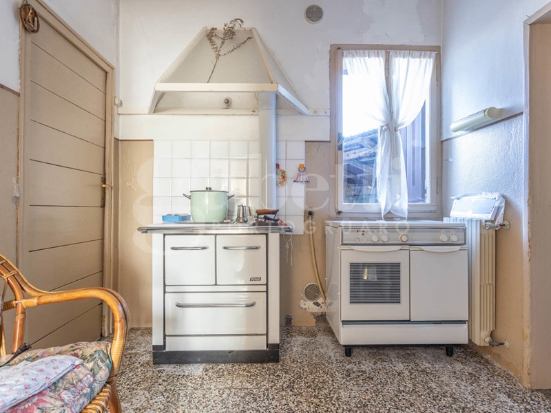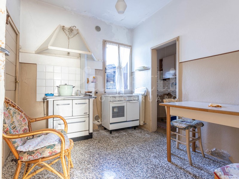 Disposta su due livelli, al piano terra troviamo una camera da letto, la zona giorno composta da un vano pranzo/soggiorno, cucina separata con sbratta come da usanza dell'epoca costruttiva, un bagno, più ulteriori vani collegati, che in un'ottica di riqualifica offrono ampie opportunità di adattamento in base delle proprie esigenze.