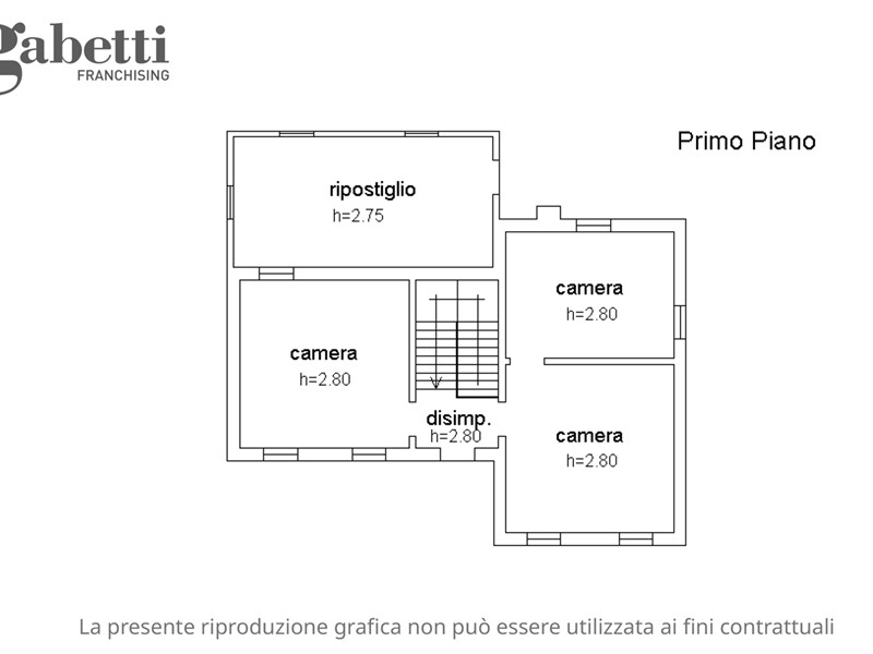 Le scale, corpo centrale dell'abitazione, conducono al piano superiore dove trovano spazio tre ampie camere da letto.