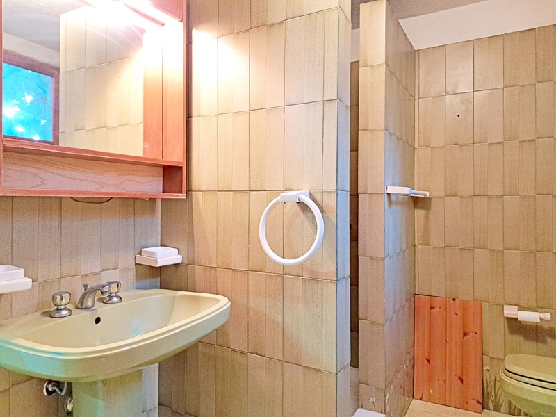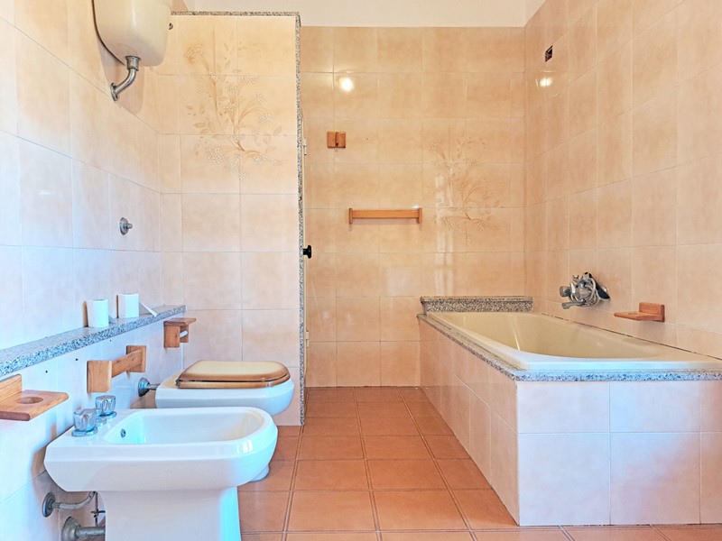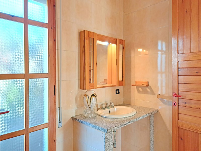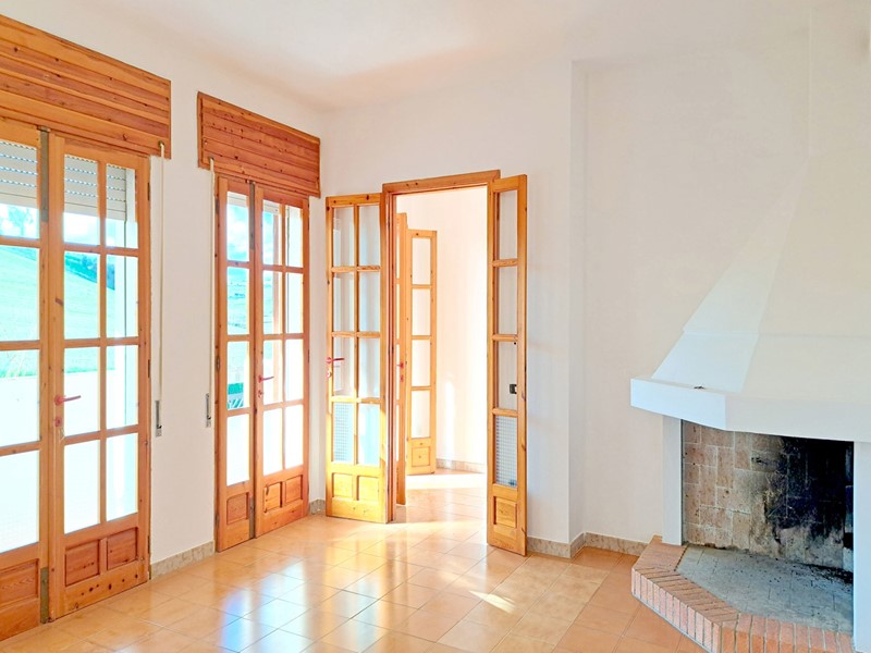 Ingresso, soggiorno con camino, cucinino, tre camere da letto, disimpegno, bagno, due balconi e veranda al piano primo e, con accesso sia interno che esterno, locale di sgombero con camino, posto auto, due ripostigli e wc al piano terra.