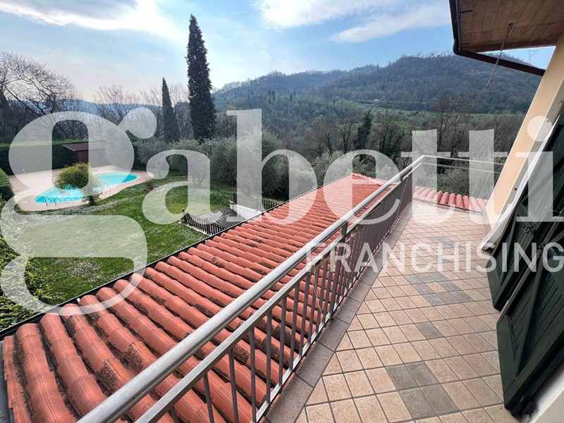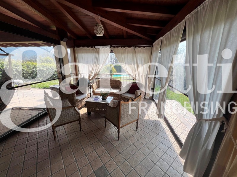 A Roè Volciano, in posizione strategica e comoda alla vicina Salò, proponiamo in vendita una villa bifamigliare, con giardino privato e meravigliosa piscina, così disposta: ingresso, salone doppio luminoso e con camino, zona angolo cottura/living, stupenda veranda con travi a vista e bagno zona giorno - il tutto circondato dal bellissimo giardino privato molto curato e riservato, con ulivi e alberi da frutto -; al primo piano troviamo la zona notte con una camera matrimoniale, una spaziosa camera doppia con balcone, una camera singola con balcone e un bagno finestrato.