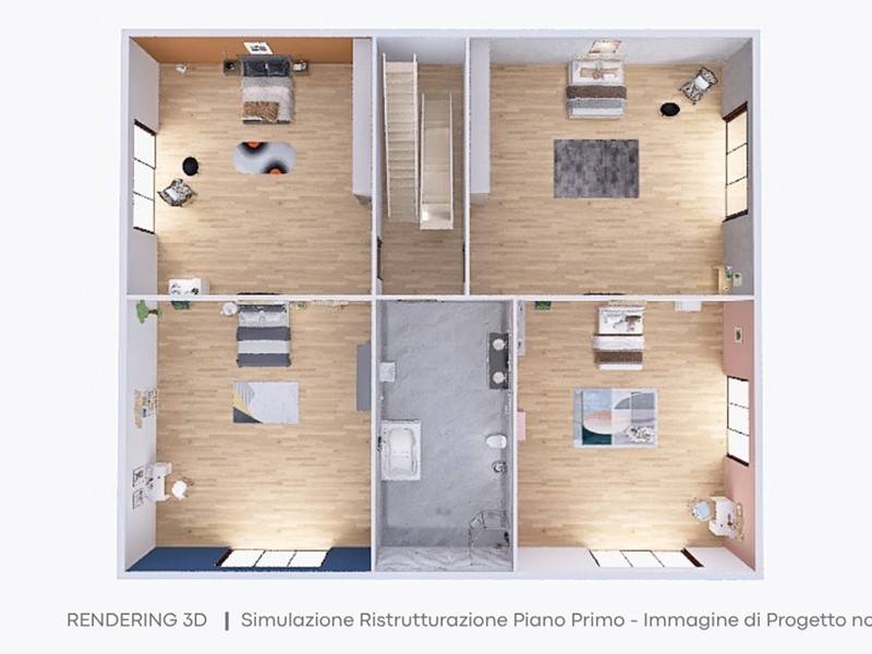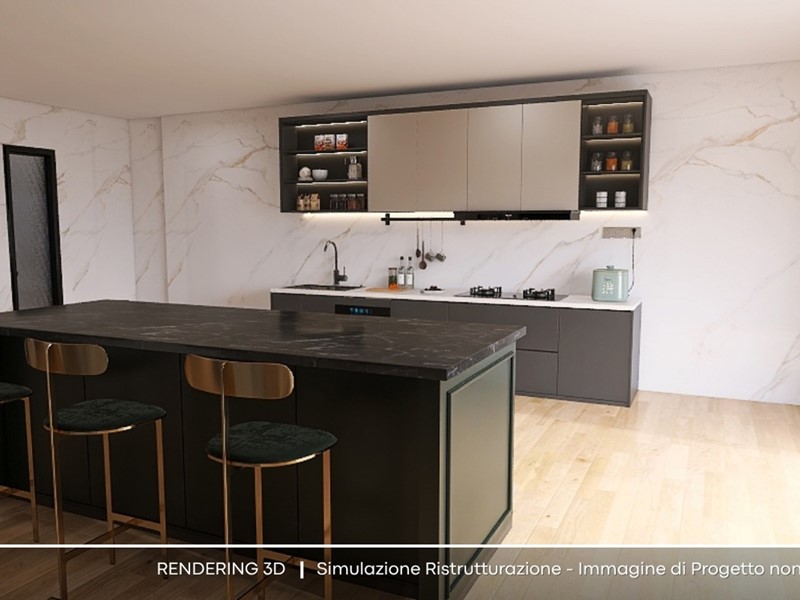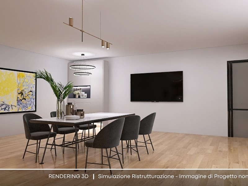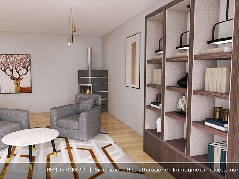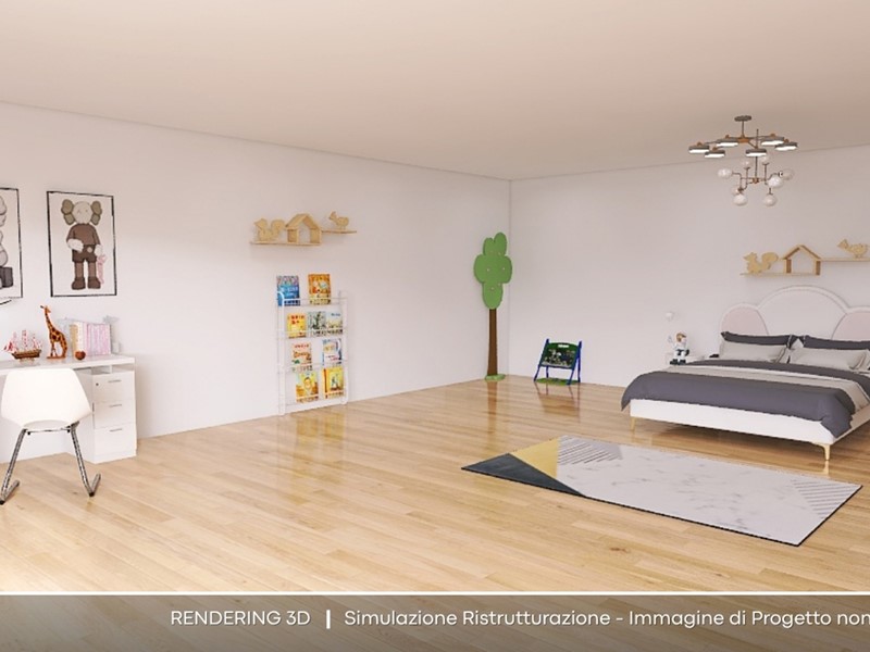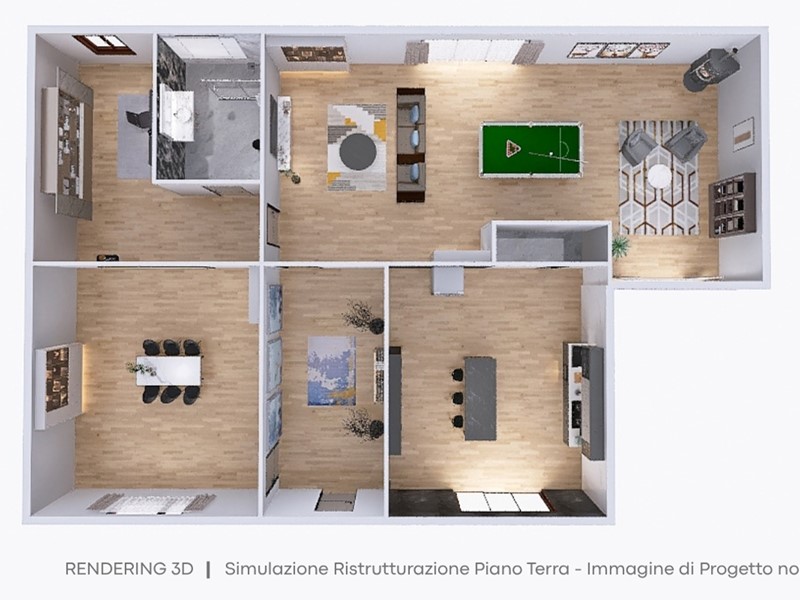 I rendering 3D sono stati realizzati a scopo puramente illustrativo e offrono una visione ipotetica di come la casa potrebbe essere ristrutturata.