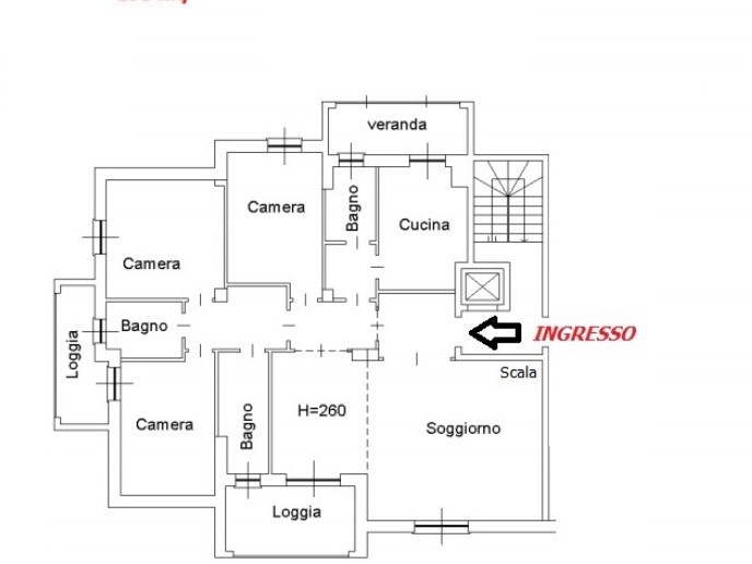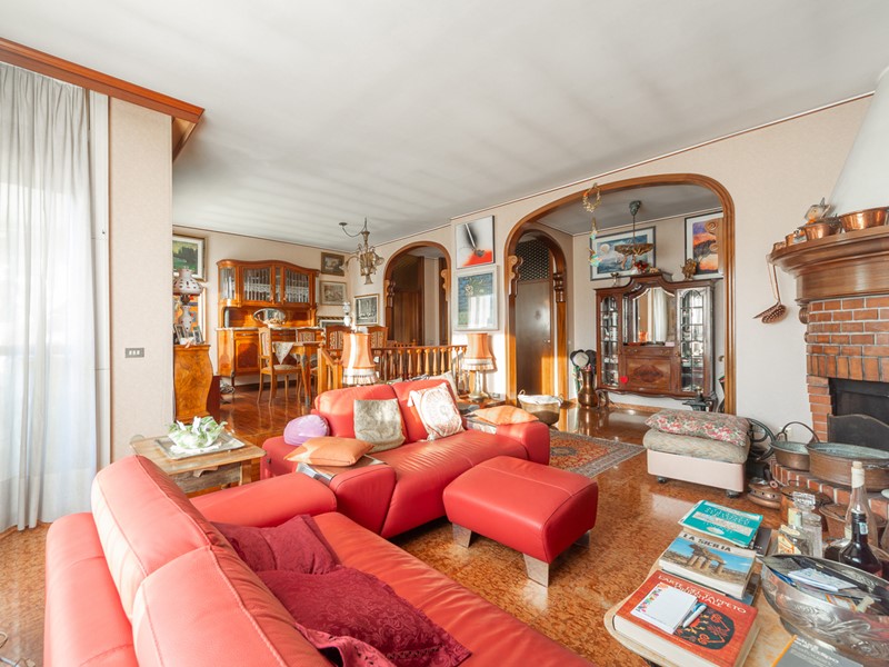 5°PIANO: ingresso, ampio salone con camino in mattoni funzionante e scala a chiocciola in ferro battuto che conduce al piano sovrastante, cucina abitabile, disimpegno con armadiatura ad uso ripostiglio, 3 ampie camere da letto, 3 bagni finestrati, 2 BALCONI loggiati ed una VERANDA.