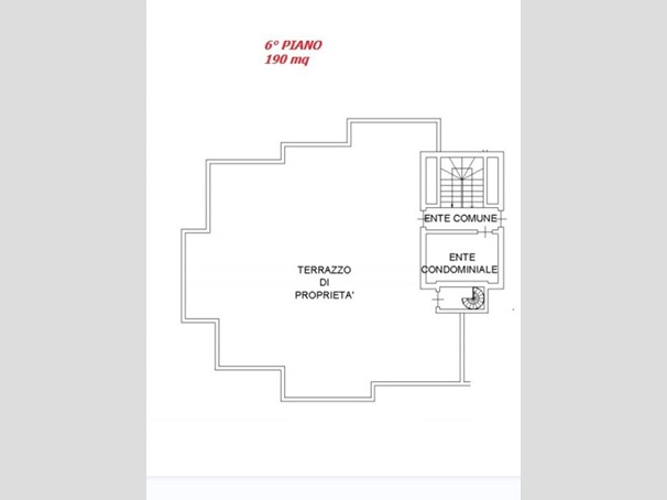 6° PIANO: ingresso dalle scale condominiali e/o direttamente dalla scala interna della sala che conduce al fantastico TERRAZZO di 190 mq, ideale per amanti degli spazi esterni.