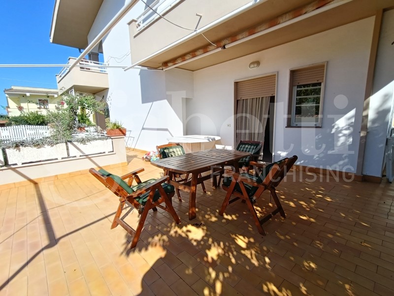 Nettuno Padiglione, in contesto tranquillo e in prossimità dei principali servizi proponiamo in vendita appartamento di ampia metratura posto al piano terra rialzato con entrata indipendente disposto come segue: una veranda di accesso, ingresso, soggiorno con camino con uscita sul terrazzo, cucinotto, 3 camere, ripostiglio e bagno. Inoltre dispone al piano seminterrato di un appartamento/sala hobby con accesso esterno tramite rampa di 70 mq composto da soggiorno con angolo cottura, camera, lavanderia e bagno. Completano la proprietà un giardino fronte/retro di 240 mq circa con barbecue in muratura ed un garage di 33 mq. L'immobile si presenta in buono stato di manutenzione dotato di predisposizione per riscaldamento autonomo e infissi in legno. Principali distanze: Servizi 650 mt Stazione 500 mt Mare 6 km.