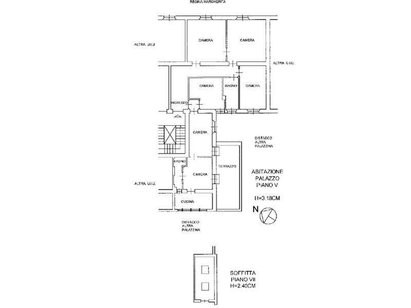 ampio ingresso, sala da pranzo aperta sul cucinotto, quattro camere da letto, di cui due con affacci esterni su Viale Regina Margherita e due con affacci interni che danno sul distacco con l'altra palazzina, due servizi (uno finestrato) e un bellissimo terrazzo di 20 mq circa; ad offrire ulteriore spazio e funzionalità all'abitazione, un'ampia e comoda soffitta finestrata.