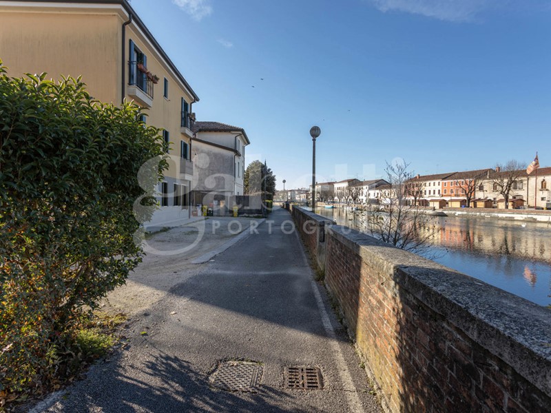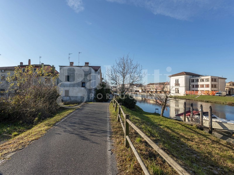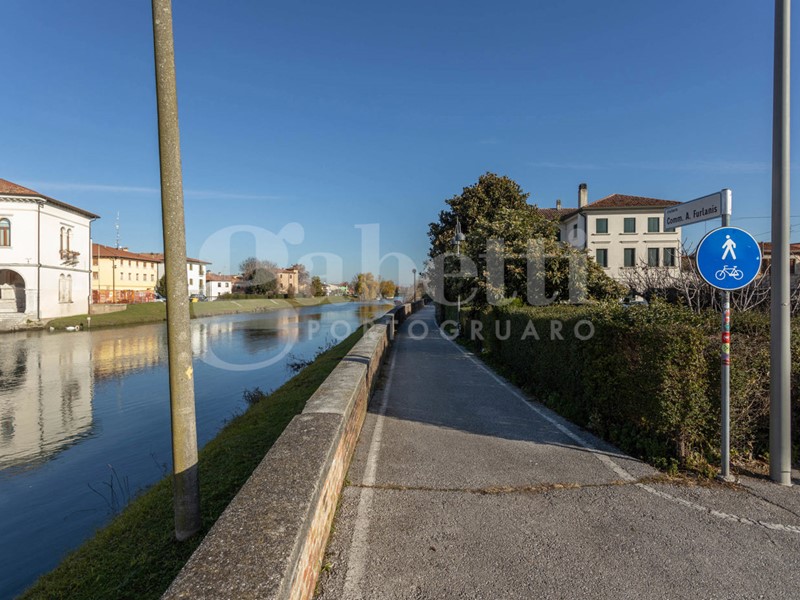 L'unità si trova in una corte interna, raggiungibile in auto dalla strada principale, ma anche a piedi dalla ciclopedonale che affianca il fiume.