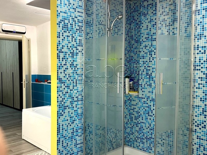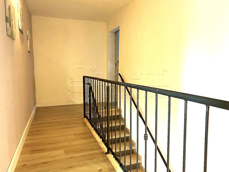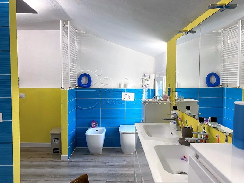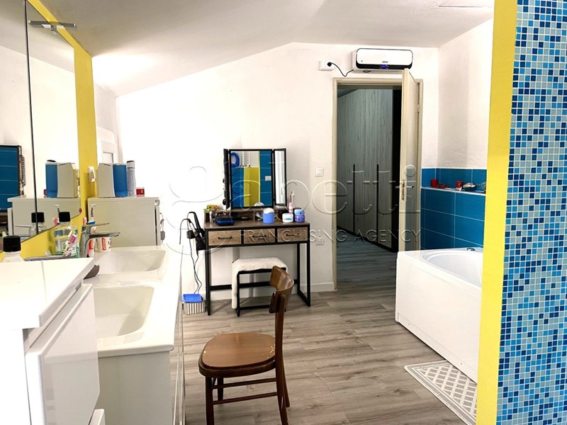 Al primo piano troviamo tre camere da letto, ampio bagno finestrato - a cui si può accedere sia dal disimpegno che da una delle camere matrimoniali - dotato di box doccia, vasca e doppio lavabo lui/lei.