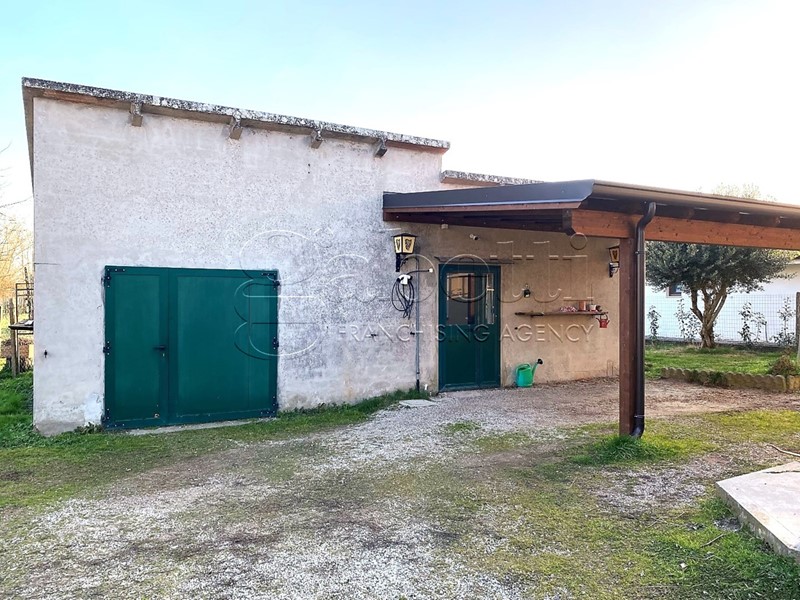 All'esterno troviamo un garage con annessa tettoia in legno.