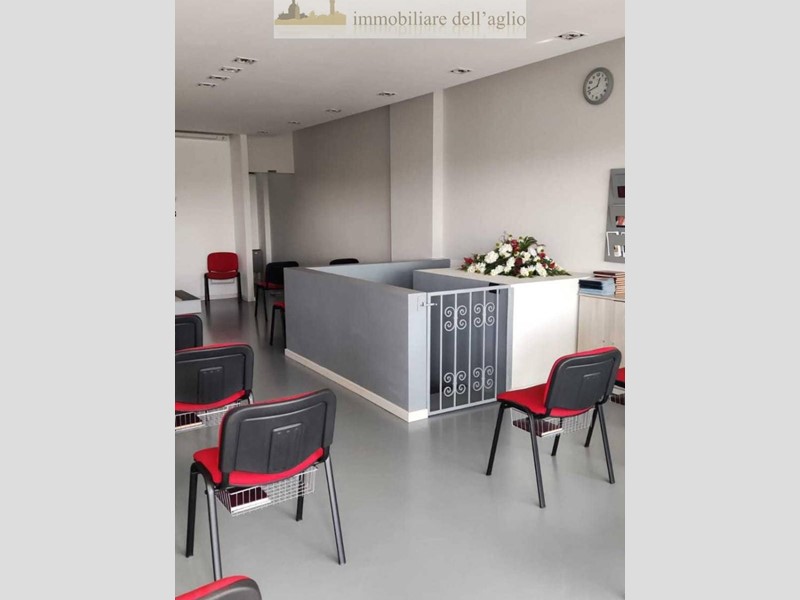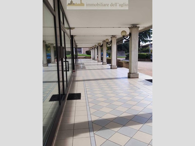 In piccolo centro direzionale/commerciale fronte strada con ampio parcheggio, ufficio/negozio di circa 60 mq con luminose vetrate e grande portico di accesso con installato cassonetto esterno per eventuali insegne pubblicitarie.