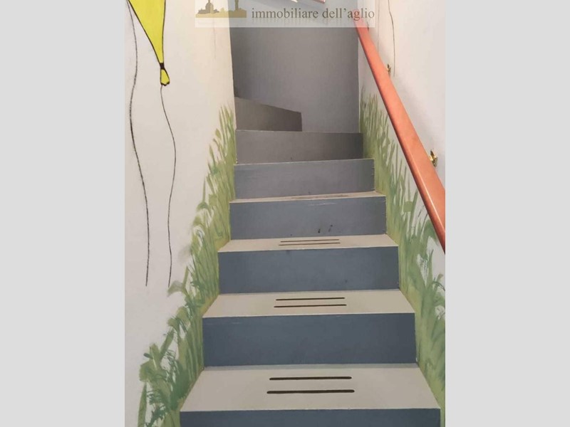 All'interno dell'immobile troviamo anche un bagno con antibagno finestrato ed una scala interna che porta nell'interrato di 45 mq adibito attualmente a taverna/sala ludica ma fornito di basculante per accesso auto.