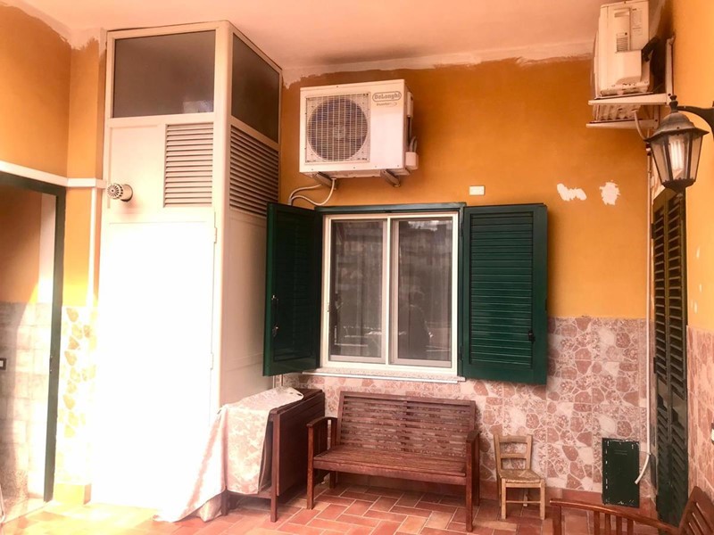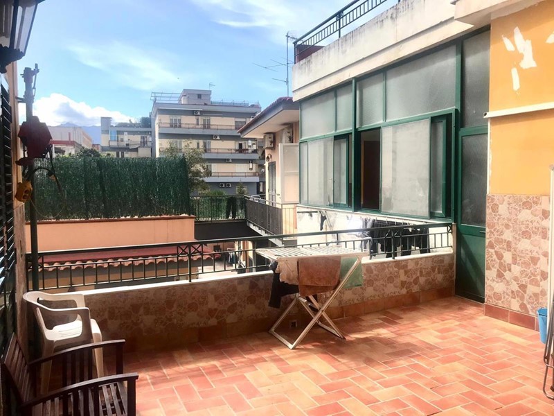 Brusciano: Sul Corso principale, proponiamo in vendita soluzione semi indipendente in piccola corte di sole 2 unità abitative, composta da ampio quadrilocale con camino, cucina abitabile in muratura e doppi servizi posta al primo piano. L'appartamento dispone di una veranda di c.a. 25mq anch'essa con camino e cucina in muratura, terrazzo a livello e una balconata fronte corso. Completa la soluzione box auto e cantinola.