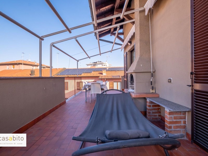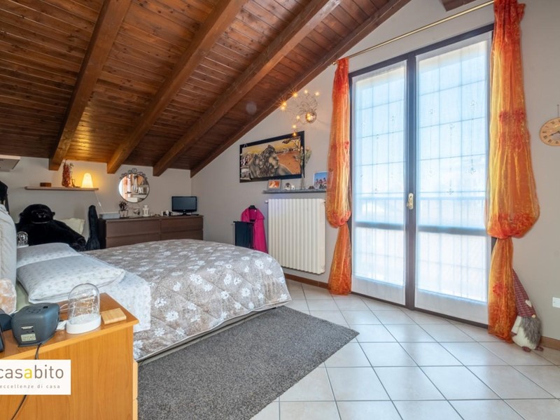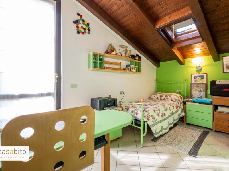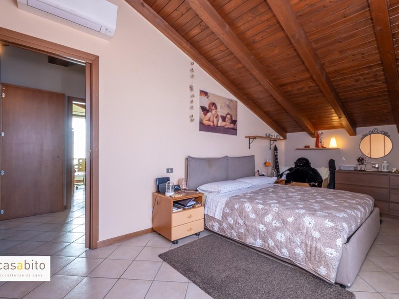 Una scala elegante conduce al piano mansardato, dove si trovano una seconda camera matrimoniale, una cameretta singola con accesso diretto a un ampio terrazzo panoramico, ideale per cene all'aperto, e un ulteriore bagno con doccia. A completare il piano, un locale versatile da adibire a stireria, guardaroba o cabina armadio, in base alle esigenze personali.