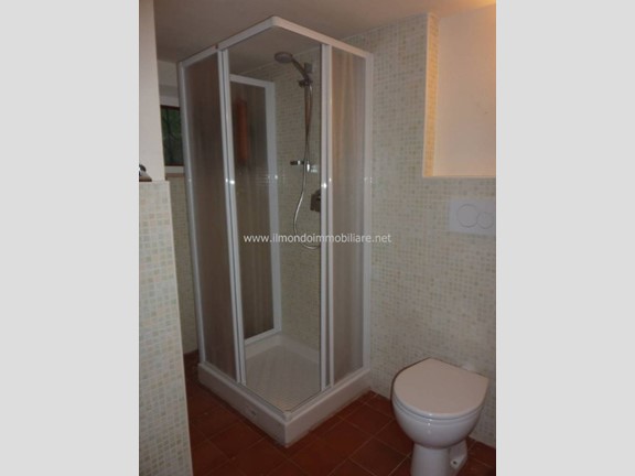 Taverna indipendente con camera matrimoniale e bagno con finestra e cabina doccia.