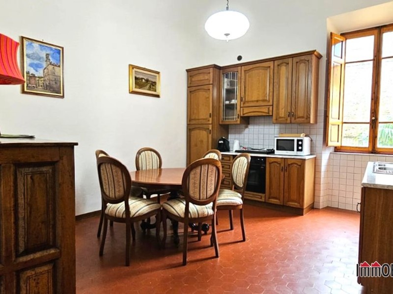 Vendesi nel Comune di Volterra (PI), in zona centrale APPARTAMENTO posto al piano secondo di mq 215.\nL'immobile, situato in un palazzo storico di rilevanza estetica, è posizionato dentro le mura del centro storico ed è così composto:\nal piano secondo, (con scale comode da percorrere) troviamo cucina abitabile, sala da pranzo, sala, tre grandi camere matrimoniali, due bagni, due ripostigli. È di pertinenza dell'appartamento una cantina al piano terra.\nL'appartamento dispone di ben tre porte di ingresso (dal pianerottolo), il che può essere utile per dividere l'abitazione in più unità, ciascuna col suo ingresso.\nL'immobile è munito di doppie finestre per l'isolamento termico ed acustico.\nPossibilità di acquistare tutta la mobilia presente al costo aggiuntivo di and euro;10.000.\nClasse energetica in lavorazione.\n\nLa nostra agenzia è strutturata per fornirvi, gratuitamente, assistenza per la richiesta di mutuo, notaio, tecnici e quanto necessario tramite gli istituti bancari ed i professionisti che collaborano con noi.\nwww.immobiliarecelardo.it\n - Maggiori Dettagli: Cucina Abitabile