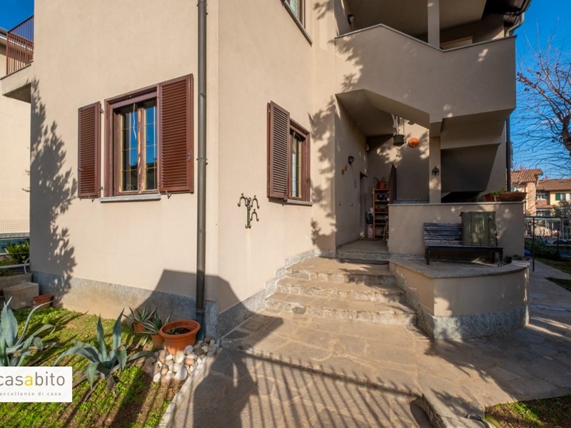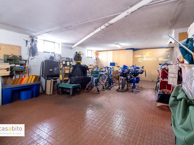 L'area esterna è molto ampia e ben curata, con un giardino privato di 165 mq dotato di area barbecue, oltre a un cortile e parti comuni che si estendono per ulteriori 220 mq. Il piano interrato ospita una cantina, una lavanderia e un comodo box auto di 58 mq.