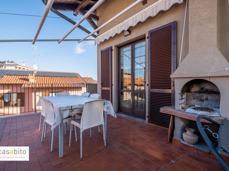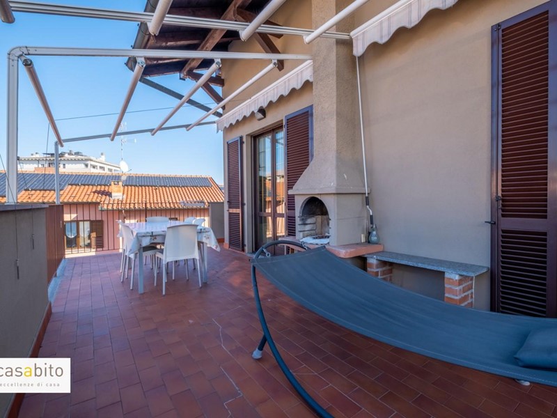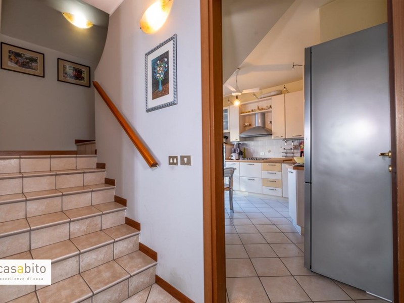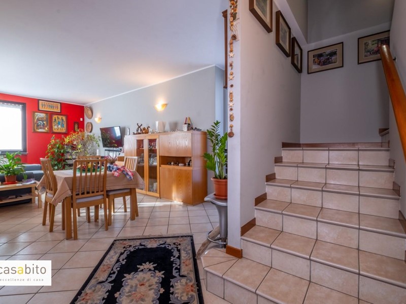 Gli spazi interni sono suddivisi in due unità abitative ben distinte. Al piano terra troviamo un trilocale di 100 mq composto da un soggiorno spazioso, cucina separata, due camere da letto e doppi servizi. Il primo piano e la mansarda accolgono invece un quadrilocale di 154 mq con un ampio soggiorno, cucina separata, due camere matrimoniali, una cameretta e una stanza guardaroba/stireria, oltre a doppi servizi. Questa unità gode anche di due grandi terrazzi per un totale di 42 mq e un balcone di 10 mq.