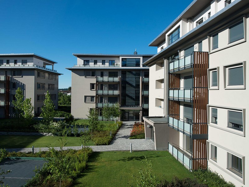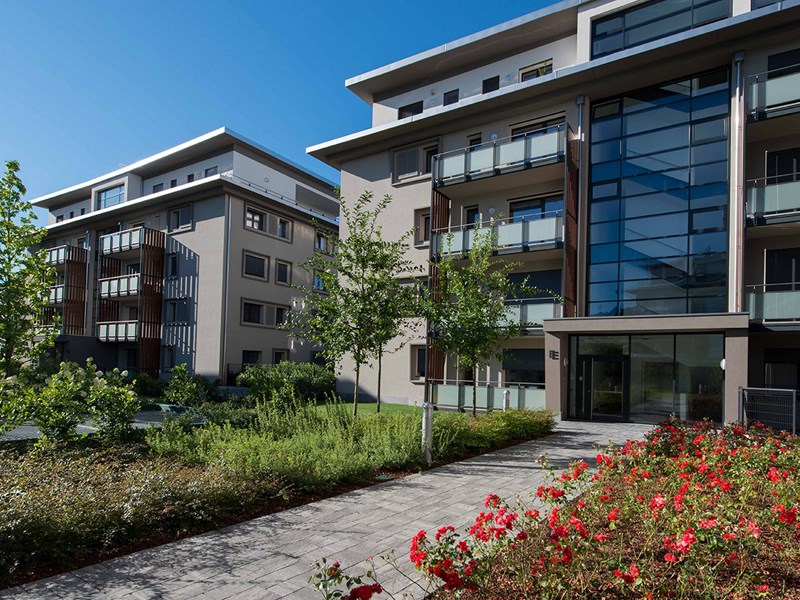Il contesto è definito da un’architettura che rispecchia i più moderni canoni di costruzione in classe A: grandi vetrate, una perfetta coibentazione termica estiva ed invernale, grandi terrazzi e spazi verdi.