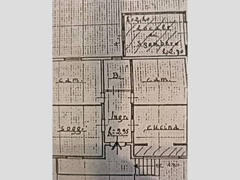 Attualmente e composto da: un' unità più grande dotata di accesso su ampio vano di ingresso , cucina abitabile, sala, 2 ampie camere matrimoniali e bagno, per complessivi 100 mq