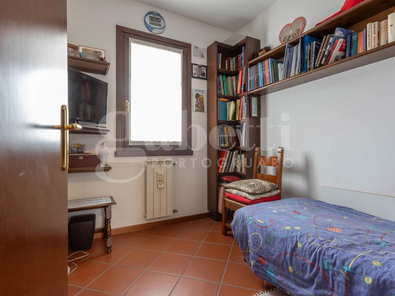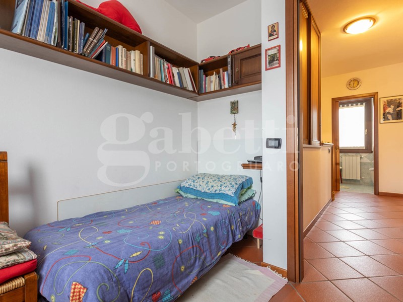 Salendo le scale si giunge al reparto notte dove un corridoio con pratico armadio a muro suddivide la camera matrimoniale, la singola con accesso al terrazzino, un ulteriore stanza attualmente adibita a camera e il bagno con box doccia.