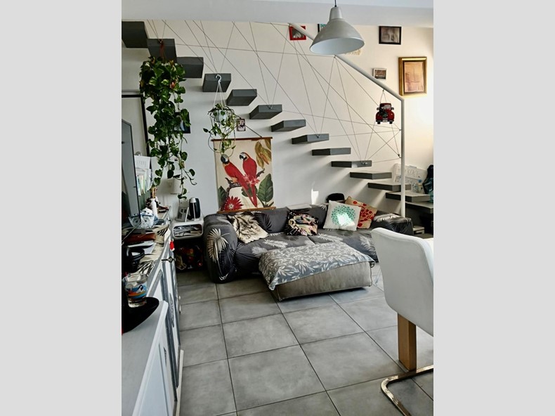 L'immobile occupa il 1° e il 2° piano, ultimo, del villino con entrata indipendente dal piano terra con scala lineare esterna, ed è composto da ingresso, soggiorno con angolo cottura e con accesso al balcone, una camera da letto matrimoniale, bagno con doccia e finestra, scala lineare di design interna per accesso al piano superiore che ospita la cameretta con accesso al balcone vivibile e panoramico, piccolo bagno cieco con doccia.