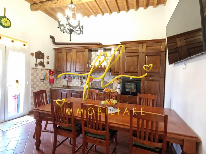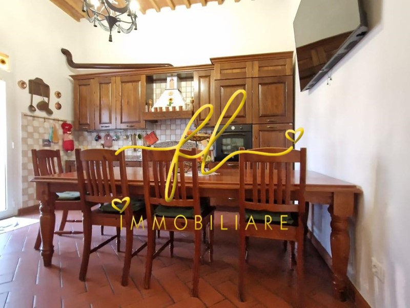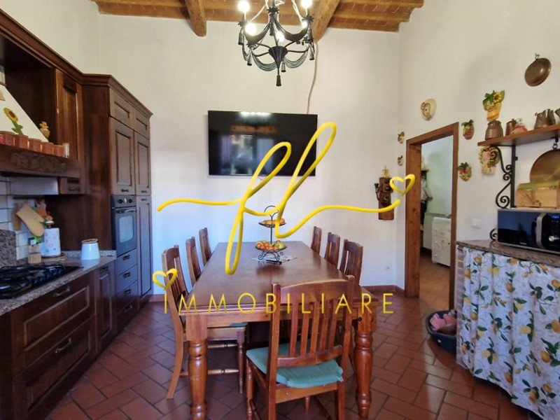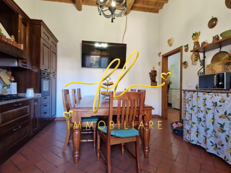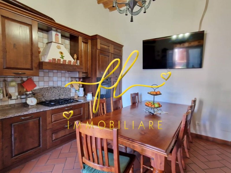 L'immobile si apre nell'ampio ingresso che ci conduce nella suggestiva sala con camino, al primo bagno con doccia e finestra e ad una bella cucina abitabile con accesso al giardino di circa 100 mq con passo carrabile da strada.