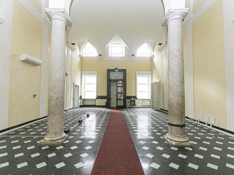 L'edificio offre ambienti prestigiosi, con grandi saloni, soffitti a volta e dettagli originali come colonne e pavimenti in ardesia e legno. Allo stesso tempo, è dotato di impianti tecnologici avanzati, tra cui un sistema di condizionamento e riscaldamento computerizzato e una rete telematica all'avanguardia, conforme agli standard dei grandi centri direzionali.