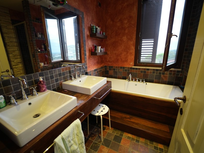 Il piano rialzato si compone di ingresso su grande salone, cucina abitabile, due bagni e tre camere da letto, due matrimoniali e una singola.
