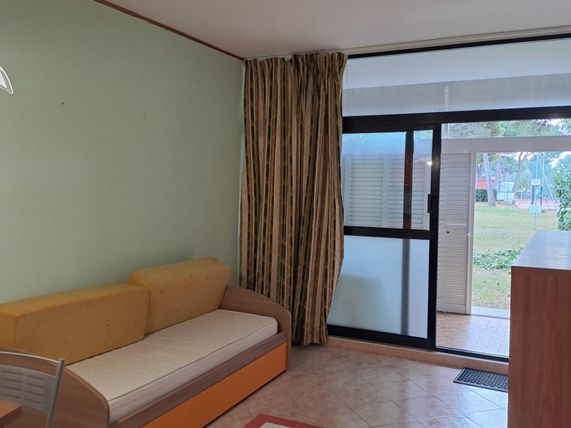 Proponiamo, a Marina di Bibbona, un appartamento bilocale al piano terra con veranda singola e giardino, in residence con piscina.