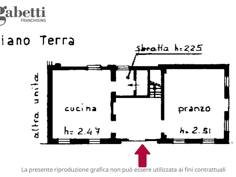 L'immobile si erige su due livelli terra cielo e si compone al piano terra di un atrio d'ingresso centrale e due stanze ai lati, la cucina ed il soggiorno.