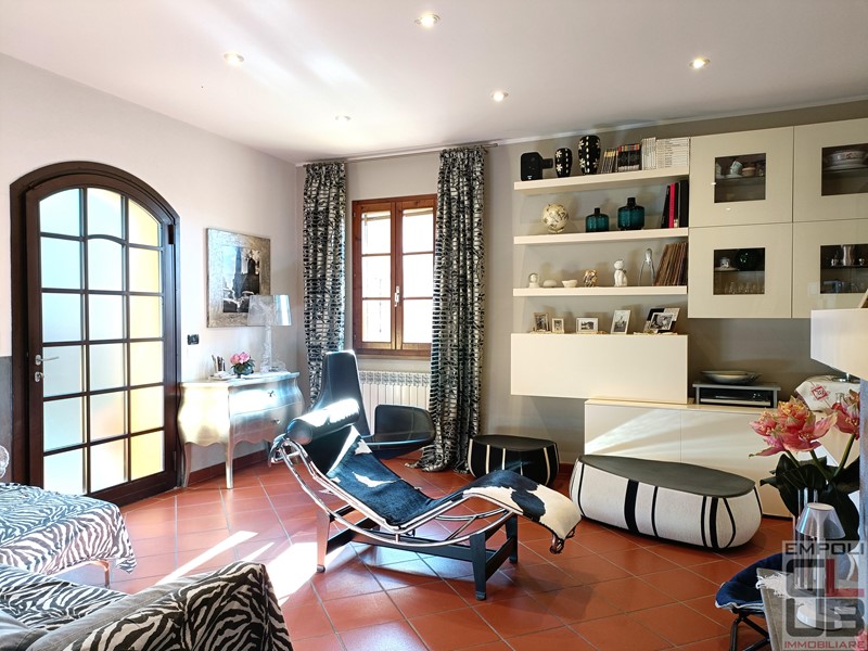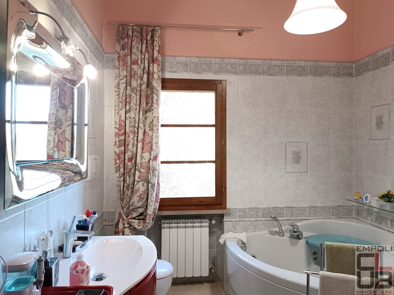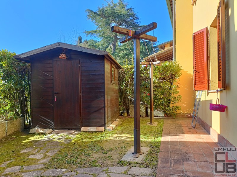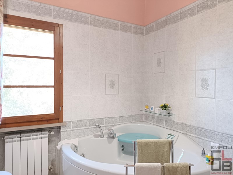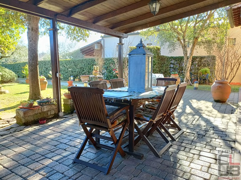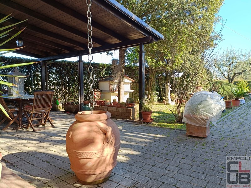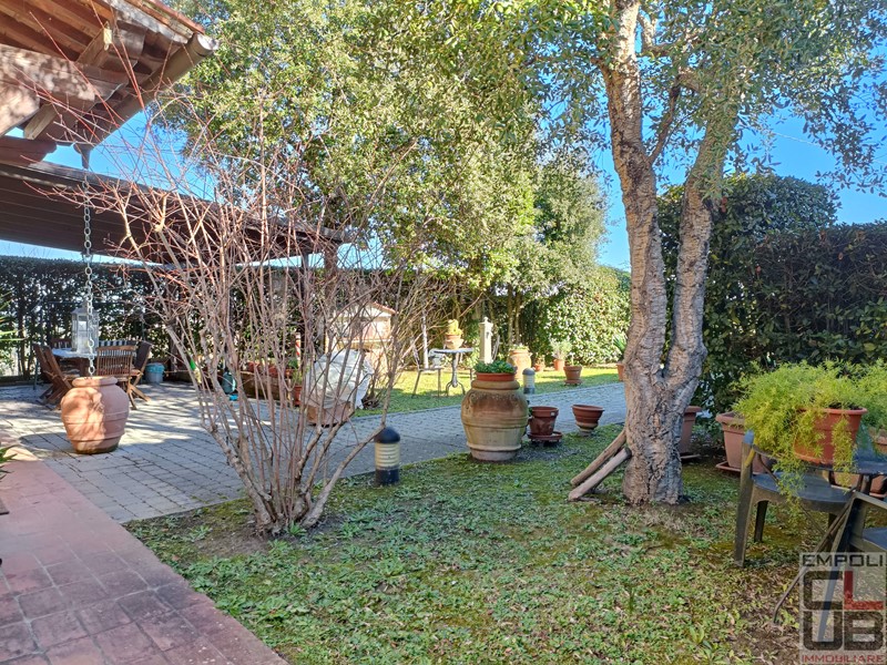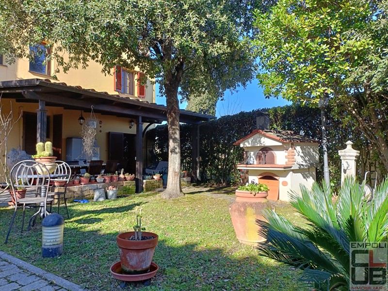 CASTELFIORENTINO - RIF BB/0333 - CONTESTO COLLINARE PANORAMICO A TRE KM DAL CENTRO DI CASTELFIORENTINO. VILLETTA ANGOLARE INDIPENDENTE SU TRE LATI, FACENTE PARTE DI COSTRUZIONE COLONICA EDIFICATA NEL 2000. TOTALI MQ 130 CIRCA, DISTRIBUITI SU DUE LIVELLI. ESTERNAMENTE, IL FANTASTICO GIARDINO ESCLUSIVO DI MQ 360 CIRCA, OLTRE GARAGE PRIVATO DI MQ 17 CIRCA E UN POSTO AUTO PROTETTO DA TETTOIA. L'IMMOBILE, OTTIMAMENTE TENUTO, PARI QUASI AL NUOVO, E' COSI' SUDDIVISO: accesso da giardino privato, ingresso, soggiorno con grazioso camino, cucina pranzo con accesso all'esterno e all'ampio loggiato, perfetto anche per numerosi ritrovi in compagnia. Il giardino, risulta in effetti molto vivibile, con spazi in discreta privacy. Completa la composizione del piano terra, servizio igienico e ripostiglio. Scala di accesso per il piano superiore, costituito da tre camere da letto, di cui due matrimoniali e una singola, oltre secondo servizio igienico con vasca idromassaggio. Dal giardino, accesso a garage privato, raggiungibile al piano seminterrato, mediante pochi scalini. A corredo, un posto auto sul retro, protetto da tettoia.