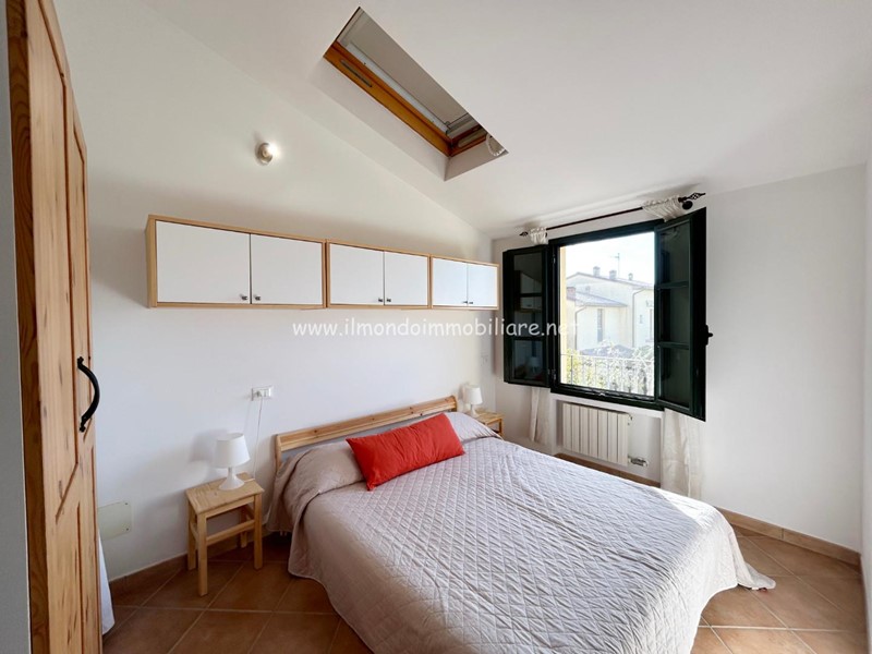 Bagno con finestra e cabina doccia, ampia camera matrimoniale con finestra e lucernario.