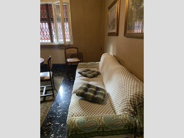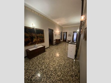 Attualmente l'appartamento ha ingresso da una loggia, e si presenta con un grande corridoio sul quale affacciano tutti i vani. Troviamo un grande soggiorno, una sala da pranzo, uno studio, quattro camere matrimoniali, due bagni ed una ampia cucina abitabile con accesso a terrazza di circa 60 mq dalla quale si accede al giardino, al garage, alle cantine ed ai posti auto